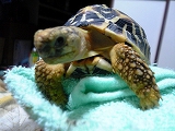 インドホシガメ 名前:ぶりちゃん。 性別は不明(多分男の子)です。現在5歳になり貫禄が出てきました。 背中の星模様がゴツゴツしています。。。ちゃんと日光浴をさせてないからかしら・・・。 名前の由来は、「ホシガメが欲しいィ〜」とペットショップに行き50匹位いる水槽から「さてどの子にしよう?」と悩み中、1匹だけもうダッシュで駆けずり回りブリブリと、う○ちをしていたこの子に決めたからです(笑) |