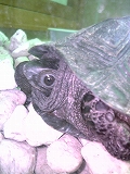 クサガメ 名前:ジェシくん。 この子は「野良亀」なのです。ある朝お店のシャッターを開けるとそこに居たのです。 それから、ぶりちゃんと仲良く(別々の水槽ですが)暮らしています。 つぶらな瞳がかわいらいしいでしょ?! |